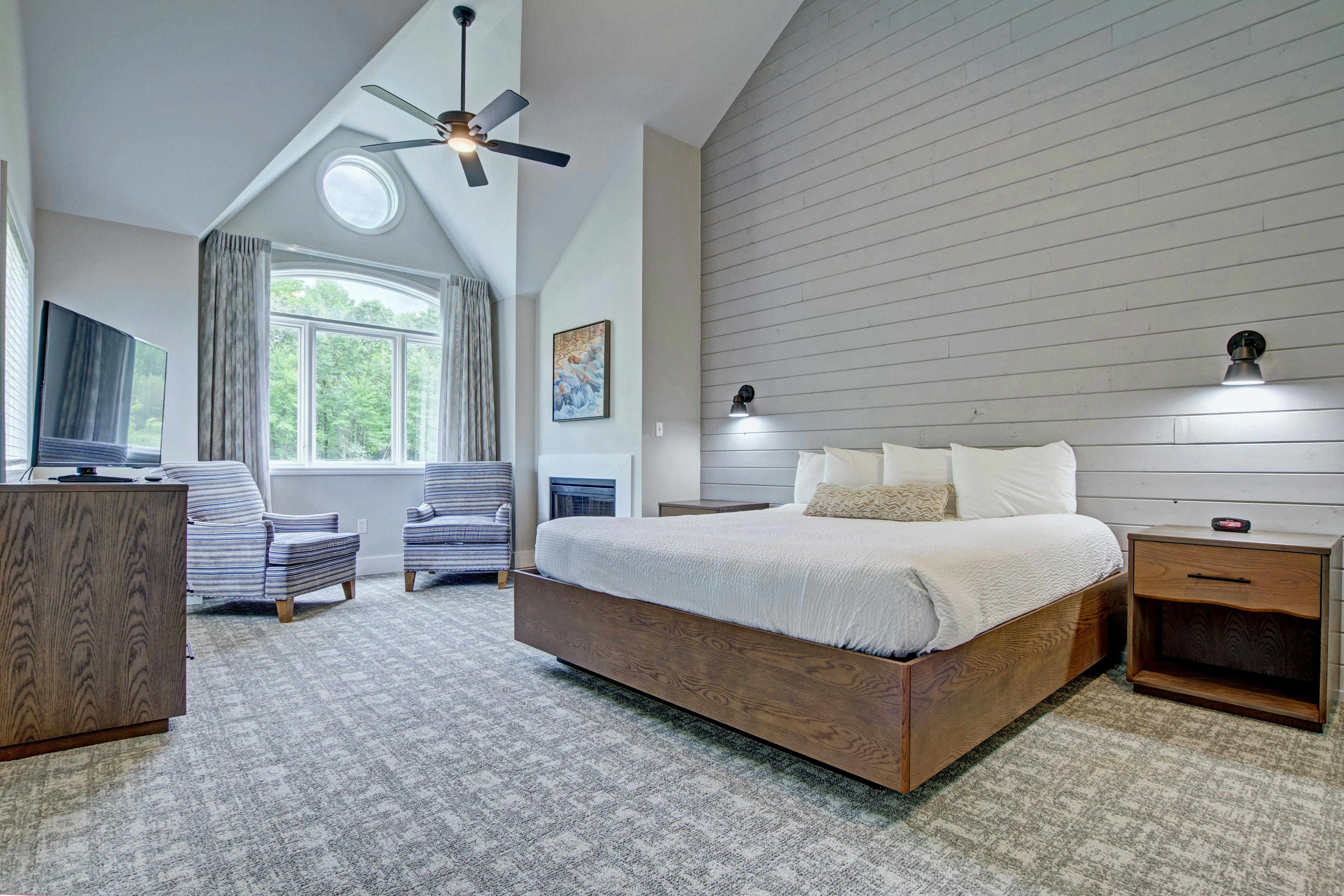 At Pocono Mountain Villas, our Premium Mobility Accessible 3 Bedroom Deluxe Fairway offers a comfortable living space for up to 8 guests with 1-King Bed in the master bedroom, 1-Queen Bed in the secondary bedroom, 1-Queen Bed in the third bedroom, 1-Sofa Sleeper, and 2 bathrooms. Plus, a full kitchen, dining area, washer & dryer, and a large flat screen television. Room configurations and furnishings may vary.
