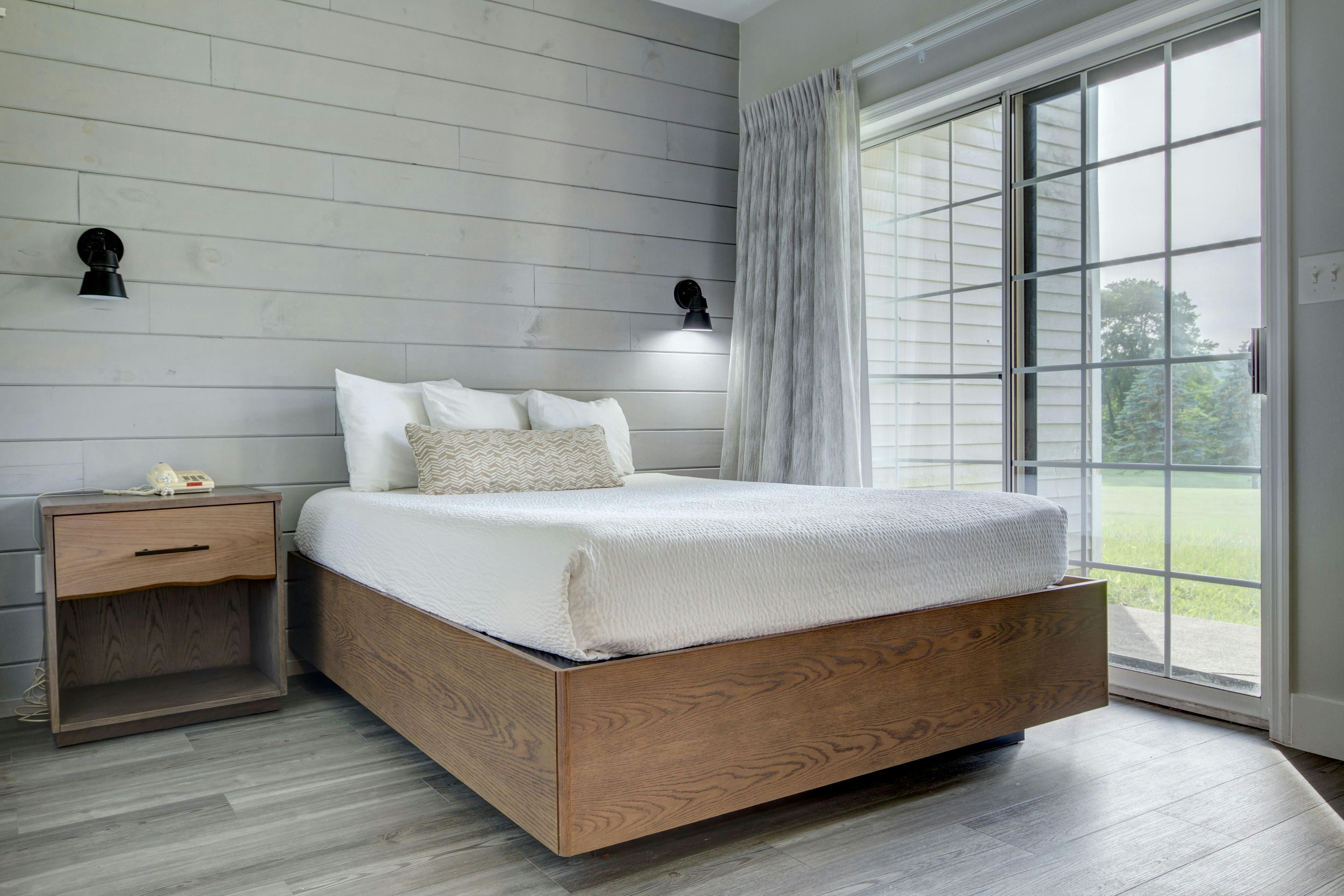 At Pocono Mountain Villas, our Premium Studio Treetops offers a comfortable living space for up to 4 guests with 1-Queen Bed, and 1-Sofa Sleeper. Plus, a full kitchen, dining area, and a large flat-screen television. Room configurations and furnishings may vary.